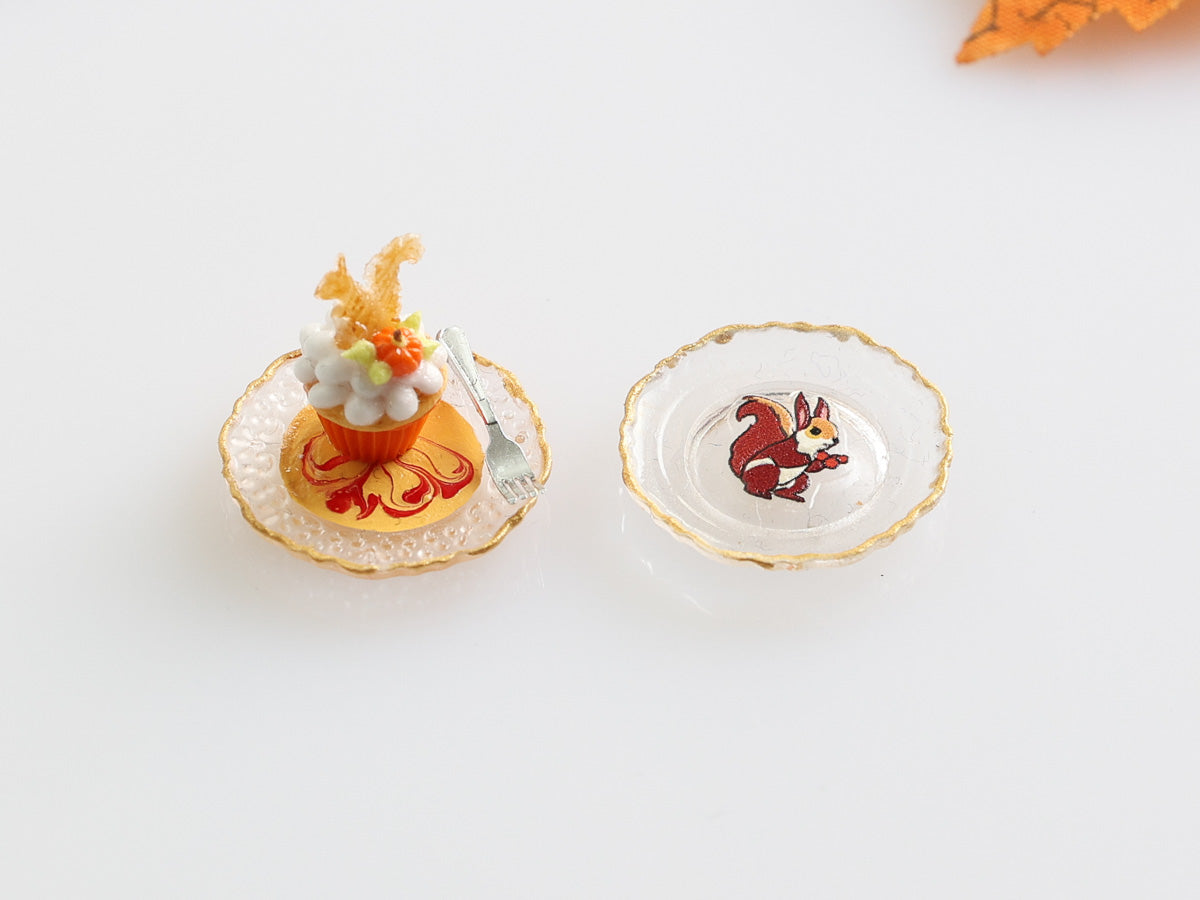 Autumn Dessert and Decorative Plate - Squirrel - Handmade Miniature Food