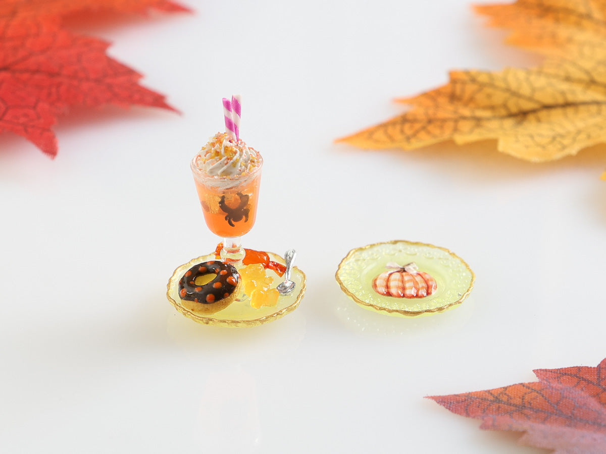 Autumn Donut Dessert and Decorative Plate - Handmade Miniature Food