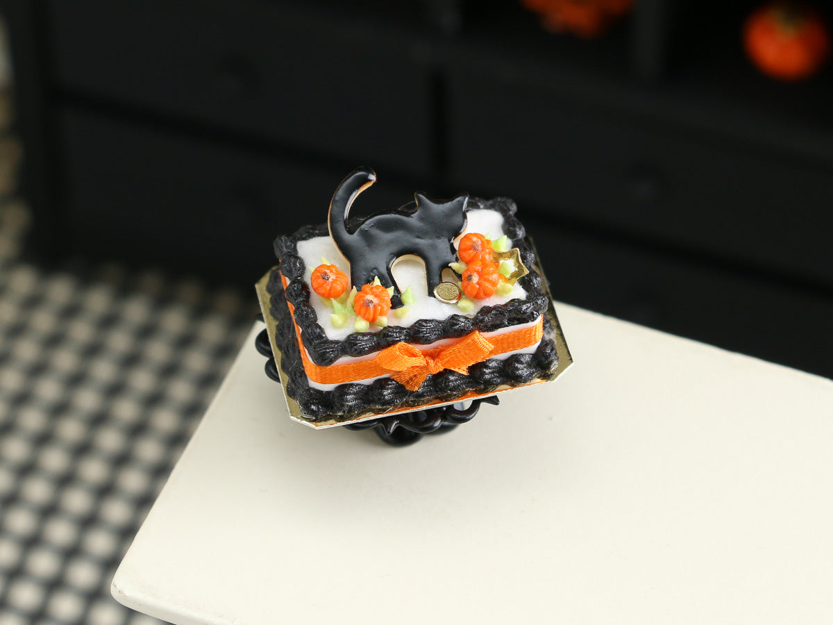 Black Cat Halloween Cake - 1:12 Scale Miniature Food for Dollhouses