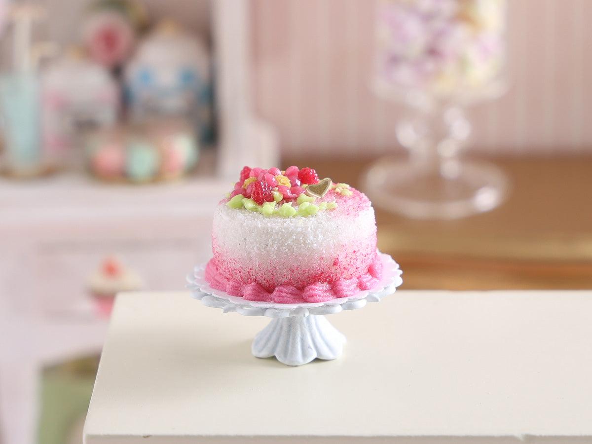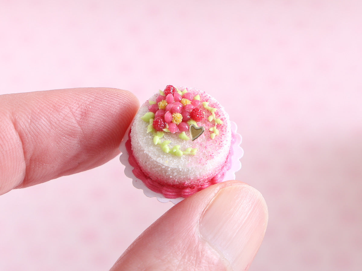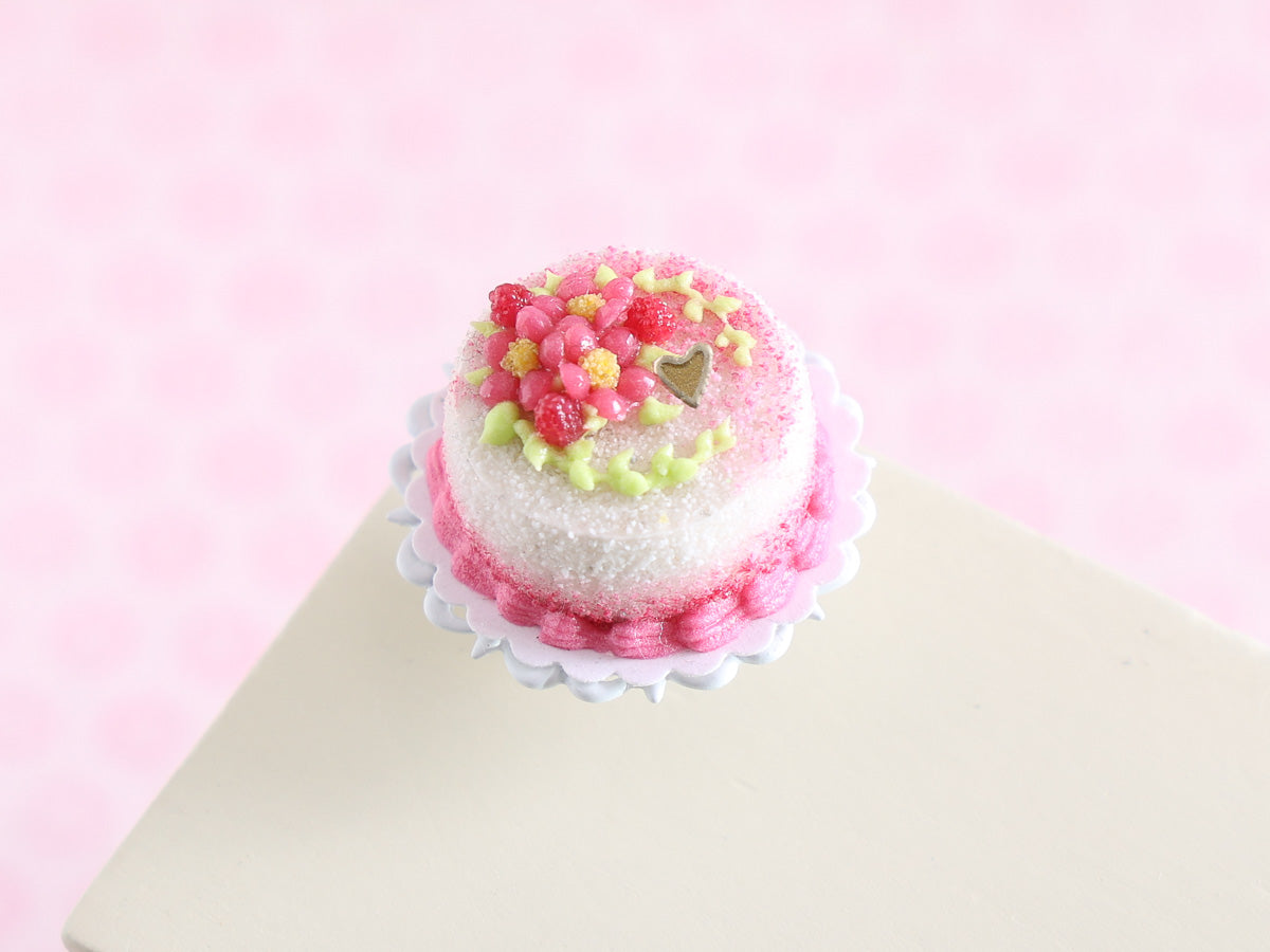 Pink flower and raspberry cake for spring - Handmade miniature dollhouse food in 12th scale