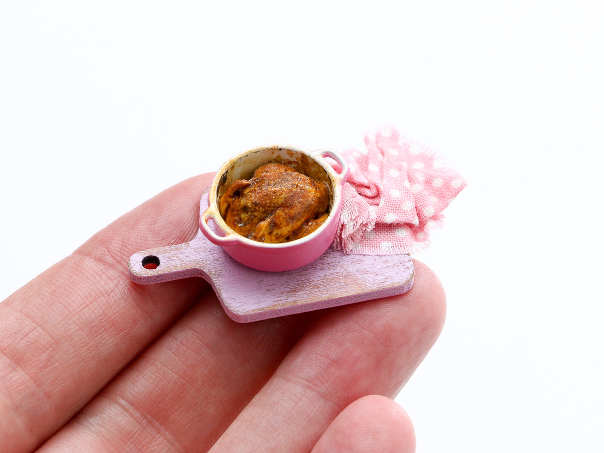 Roast Chicken in Pink Oven Dish - Handmade 12th Scale Miniature Food