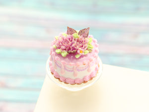 Heartshaped Cake with Lilac Roses - Handmade Miniature Food