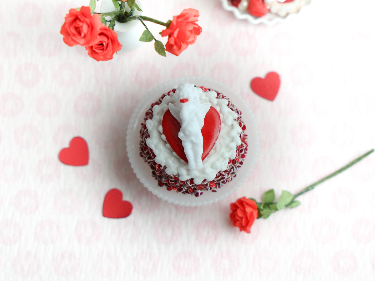 1:12 Scale Handmade Cherub Blowing a Kiss Cake (Cakestand Included) - Valentine's Miniature Food