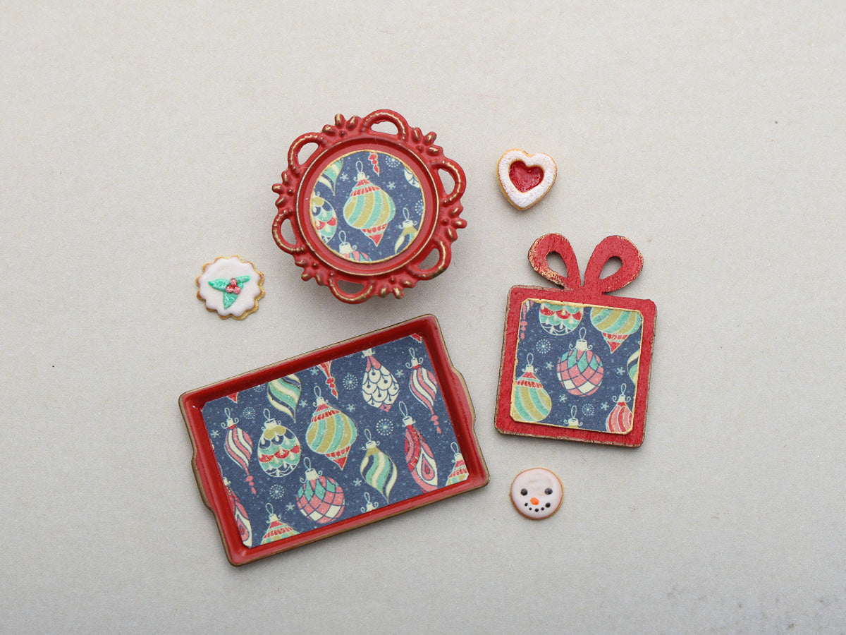 Christmas Display Set - Two Trays and a Cakestand (RED) - Miniature Dollhouse Accessory