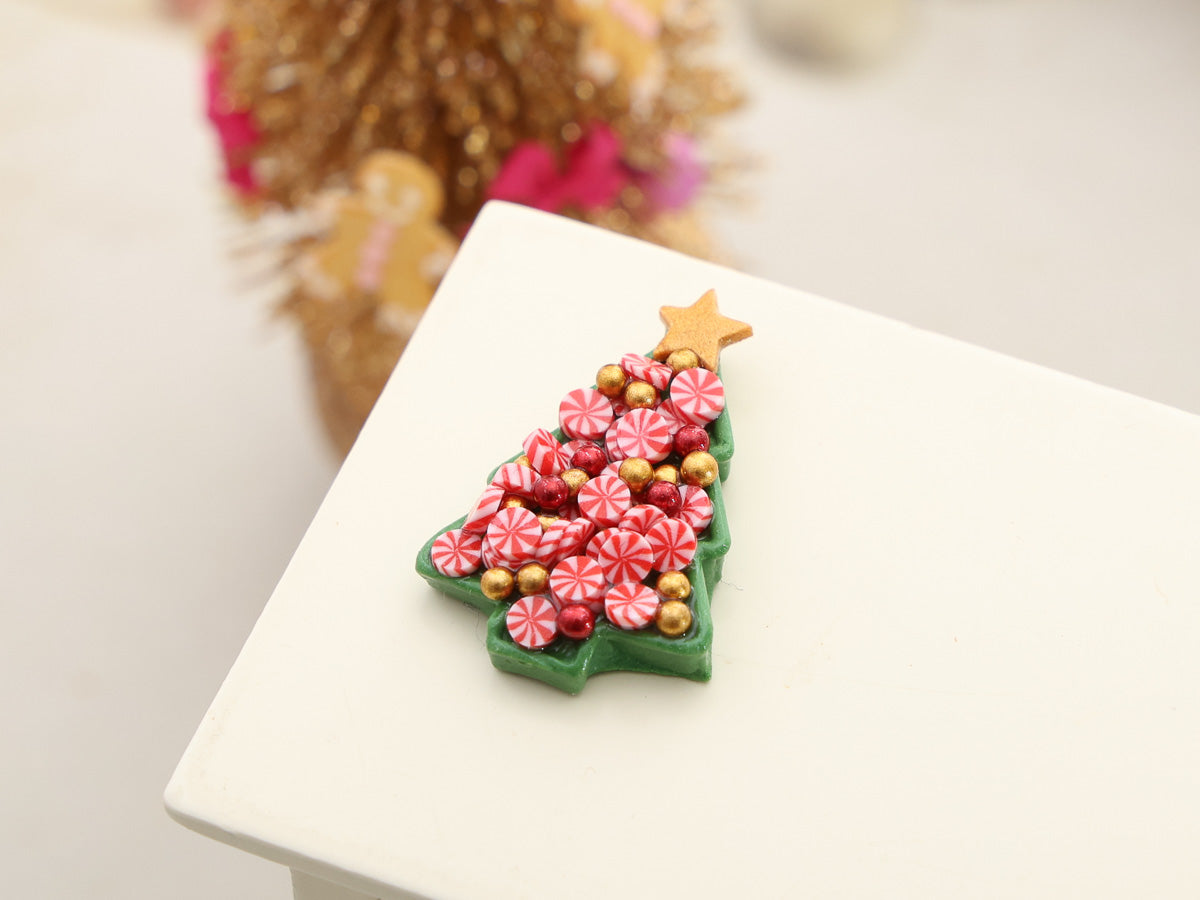 Christmas Peppermint Candy on Christmas Tree-shaped Tray - Handmade Miniature Food in 12th Scale