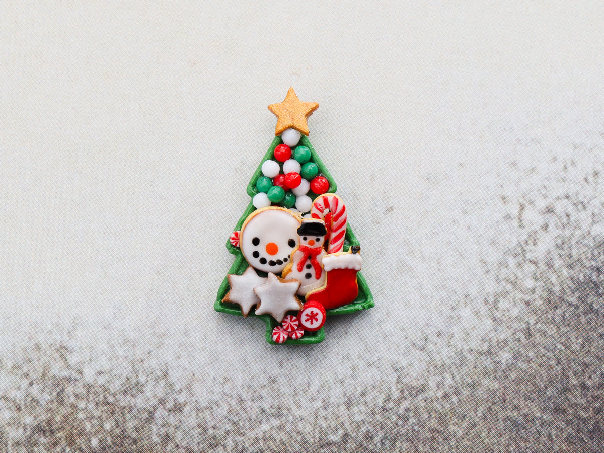 A selection of Christmas treats served on a tray in the shape of a Christmas tree.